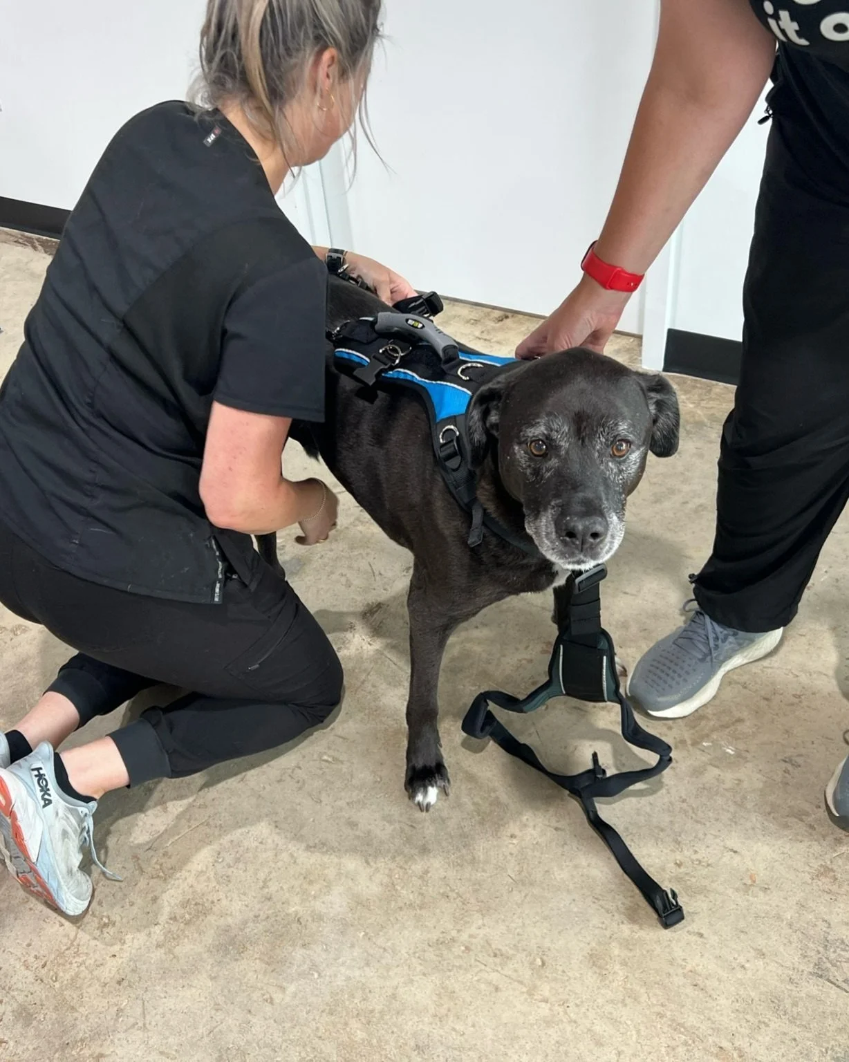 Our veterinary rehab team will custom fit your pet with an appropriately sized harness during their rehabilitation appointment. Proper measurement and adjustable straps ensure your pet's harness fits comfortably and safely.